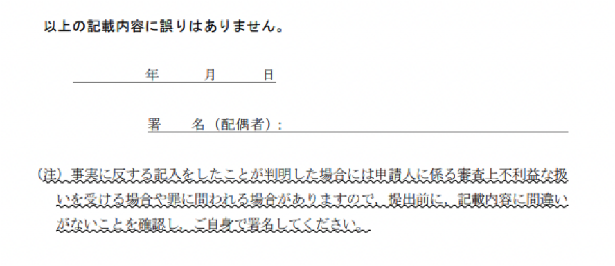 署名欄は日本人配偶者が質問書を作成した日付と氏名を自筆で記入します。