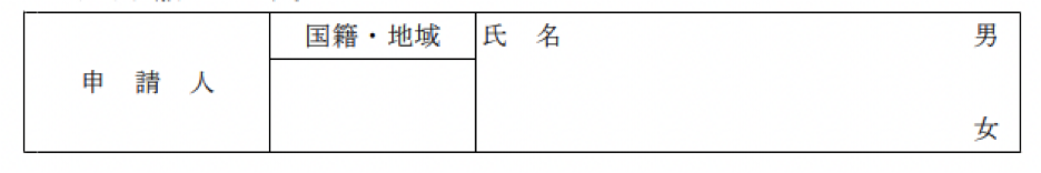 外国人配偶者側の情報を記入する申請人欄には、申請人の国籍・地域と氏名、該当する性別を記入します。